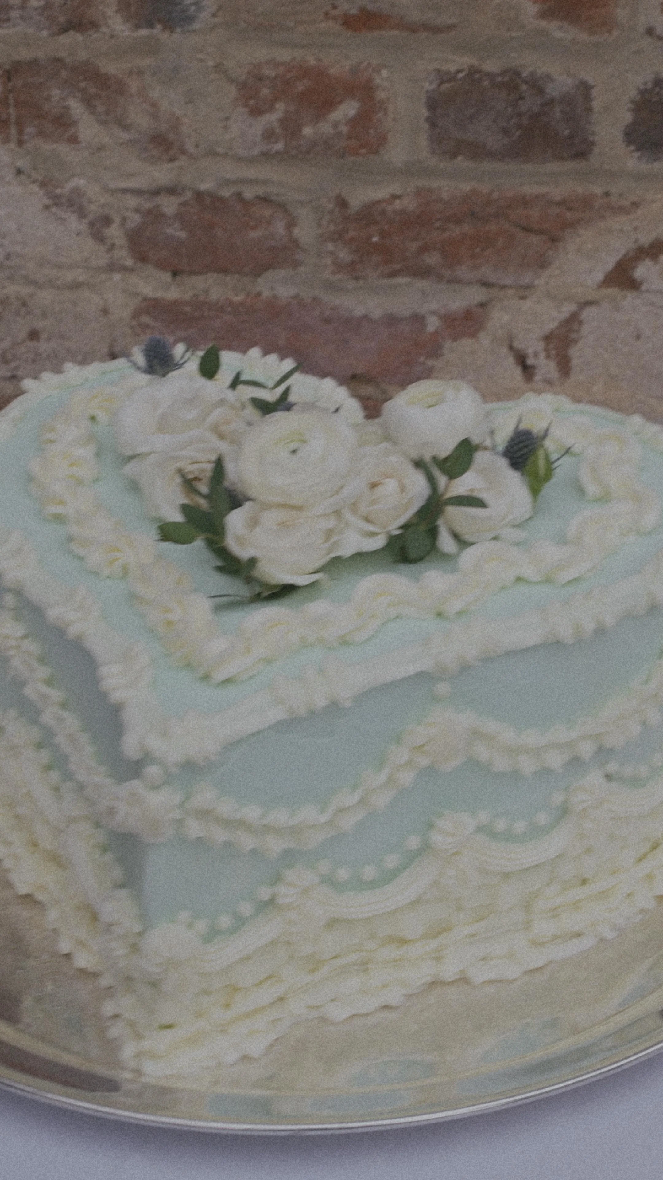 Decorative black background with blue ornate floral border and a heartfelt message about a wedding videographer and her work.